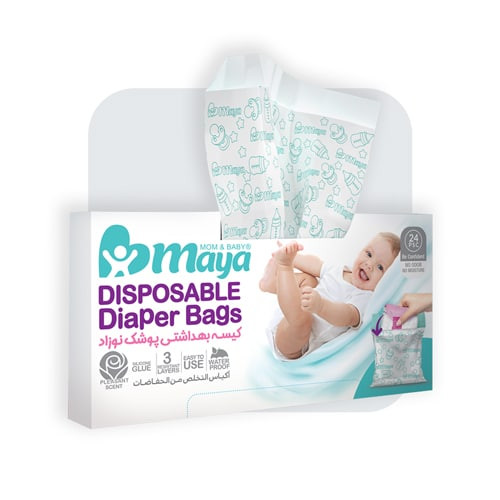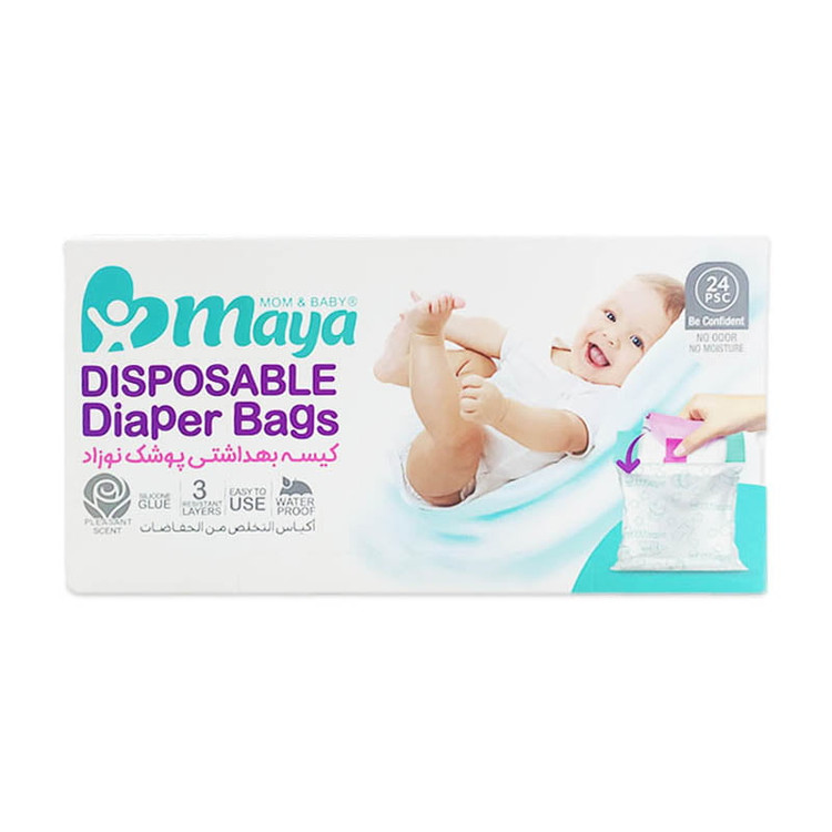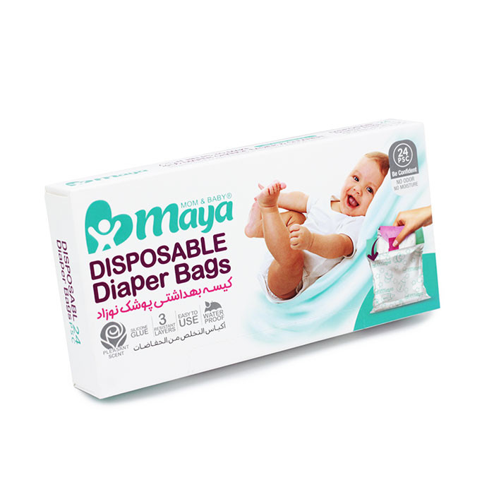 کیسه مخصوص پوشک نوزاد Maya حاوی ۲۴ عدد کیسه با درب چسب دار است.